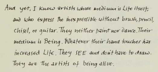 Frederick Franck once wrote of artists whose medium is not paint or stone but life itself. Everything they touch comes alive. They are, in his words, “artists of being alive.”
