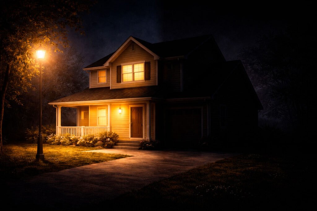 Not “The house is white.” Only what she can actually see.